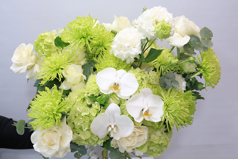 If any flower is unavailable for seasonality or any other reason, we will replace it with a similar flower of equal quality and value. Please note that with all-natural products, there may be slight variances in color but don’t worry, your flower arrangement will look stunning!